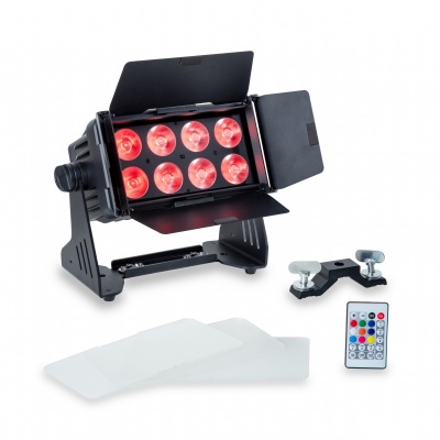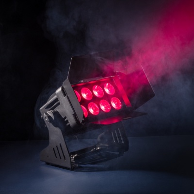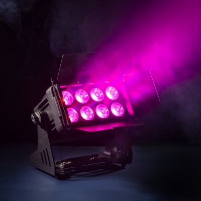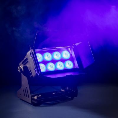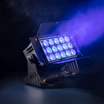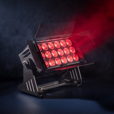 Equipped with 15W RGBW 4-in-1 LEDs (8 LEDs for MoodMaster 8 and 18 LEDs for MoodMaster 18), these fixtures provide uniform and powerful illumination, ideal for backdrops, architectural structures, and stage settings. The standard 10° beam angle can be customized with a frost diffuser (40°) or an asymmetric lens (10° x 60°) to accommodate a variety of needs. Additionally, both models come with included barndoors, allowing precise light control to avoid waste and unwanted light dispersion.