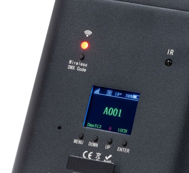 | 2.4 GHz wireless DMX with 7 selectable group IDs. | |