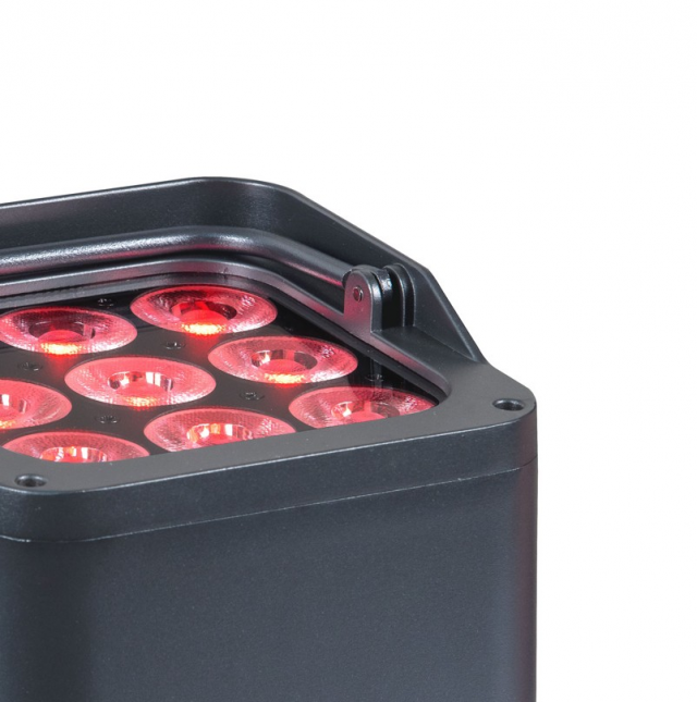 | The fixture is equipped with 9×12W 6-in-1 LEDs (RGBWA+UV) that allow for dynamic visual effects and fully customizable lighting atmospheres. | |