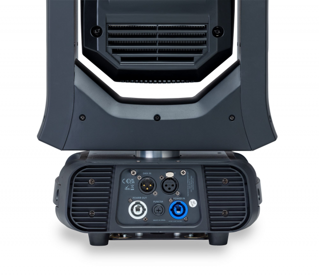 The fixture is equipped with a smooth, linear motorized zoom, providing a wide range of beam angles: 4°–32° in Spot mode and 3°–18° in Beam mode, complemented by precise linear focus for accurate and sharp projection. Its advanced effects package includes a 13-color dichroic color wheel, static and rotating gobo wheels with gobo overlay, a 3-facet rotating prism with variable speed and direction, frost filter, and high-speed strobe.