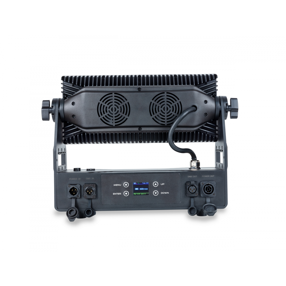 Tra le caratteristiche tecniche principali figurano la dimmerazione fluida, una frequenza di refresh selezionabile fino a 9,6 kHz per un funzionamento flicker-free, e una configurazione master-slave per sincronizzazioni ottimali. Il sistema menu consente inoltre di attivare/disattivare il funzionamento wireless, eseguire reset di fabbrica e supporta la compatibilità con RDM (Remote Device Management).