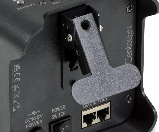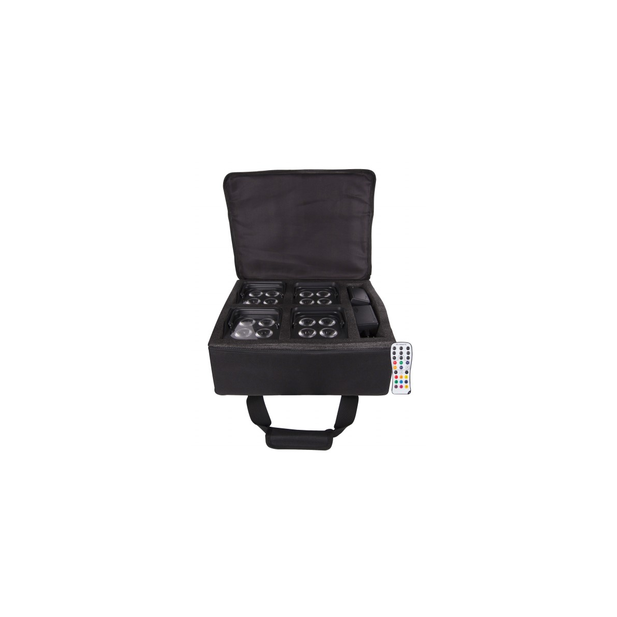La batteria al litio ad alta efficienza garantisce una carica completa da zero entro circa 5 ore, e una durata di lavoro che varia da 4 ore (modalità full color) a 15 ore (modalità single color). Il telecomando a infrarossi consente il controllo remoto delle funzioni principali senza l’uso del DMX.