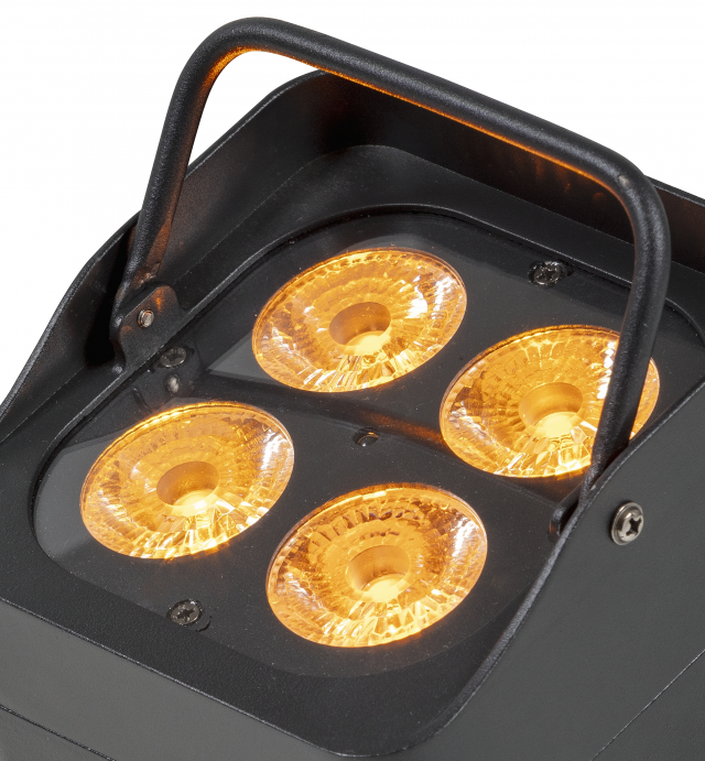 Il sistema di illuminazione dei fari è costituito da 4 LED da 12W RGBWA+UV 6in1 ad alta luminosità con una durata di circa 50.000 ore. Ogni LED è dotato di una lente di alta qualità con angolo del fascio di luce di 15° e angolo di campo di 29°, che rende questo PAR ideale per tutte le applicazioni Wash.
